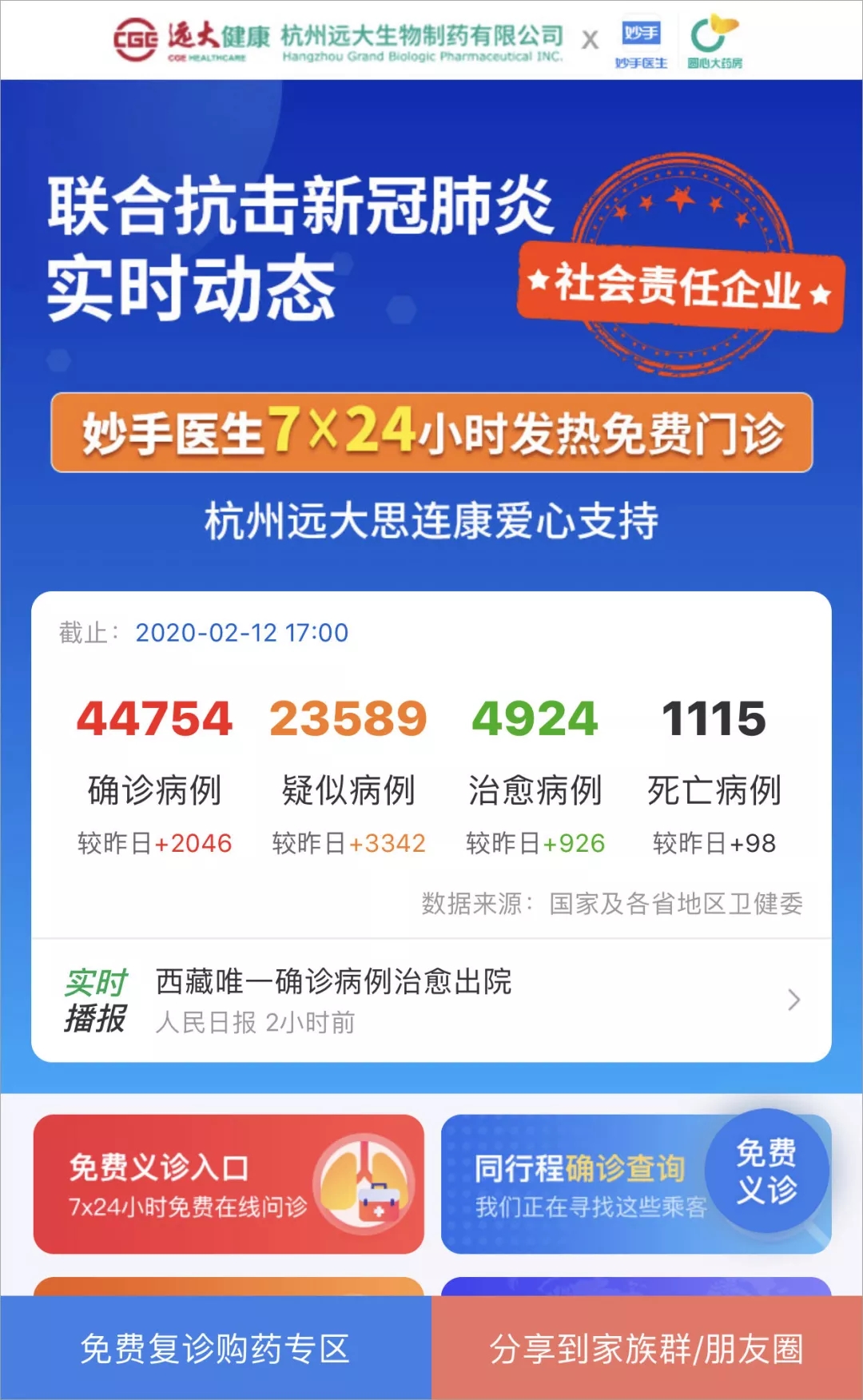 杭州远大与多个互联网医疗义诊平台共战疫情 守护健康